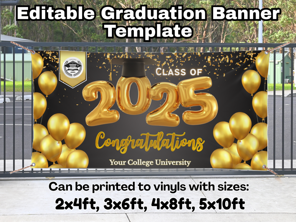 Whether you're hosting a graduation party, school event, or photo backdrop, Celebrate graduation in a big way with this easy-to-use Editable Graduation Banner Template, perfect for vinyl or tarpaulin printing!